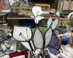In the quiet of my studio, I find myself lost in the mesmerizing dance of colored glass. Each piece I select, each precise cut, is a step in a story I’m telling with light. My hands, now familiar with the weight and texture of glass, carefully assemble these fragments into vibrant narratives, reminiscent of the grand cathedrals that first captured my heart. It’s a labor of love, this stained glass, a way to transform light into something tangible, something that whispers of stories old and new. With every finished panel, every suncatcher that catches the morning rays, I hope to share a sliver of that timeless beauty, a moment of color and light that brings a touch of magic to any space.