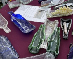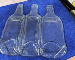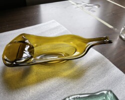 Slumped bottles are created by heating glass bottles in a kiln until they soften and sag into new, decorative shapes. This process transforms discarded glass into unique, functional items like charcuterie boards and utensil holders, showcasing a blend of artistic recycling and practical design. The resulting pieces, with their wavy, melted forms, add a touch of colorful, repurposed beauty to any setting, demonstrating how everyday objects can be reimagined through the power of heat and creativity.
